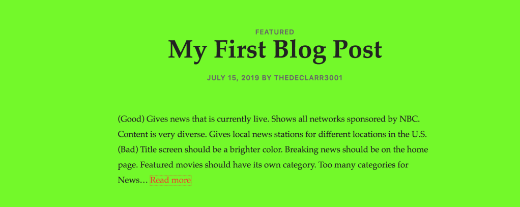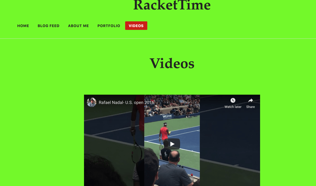 From the start, I got the wonderful impression that he loved tennis from the vibrant colors and picture on his home page. With clear and simple text it was really easy to navigate and read his work. With this, he had a functioning menu bar that made it easy to view each page. Also, I liked how he included videos to his blog to further highlight specific tennis matches.